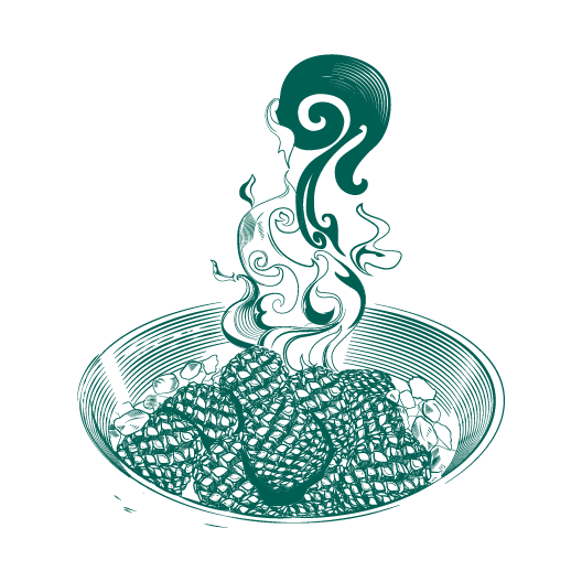 In der Destillerie (Palenque) werden die Herzen halbiert bzw. geviertelt und in einem mit heißen Steinen ausgelegten Erdloch (Horno de piso) "geröstet" und mit Agavenblättern abgedeckt, damit sich die Hitze gleichmäßig verteilen kann. Dadurch verwandeln sich die natürlichen Terpene und Fette der Agave in Zucker. Das gibt dem Mezcal seinen süßen, unverwechselbaren Geschmack.